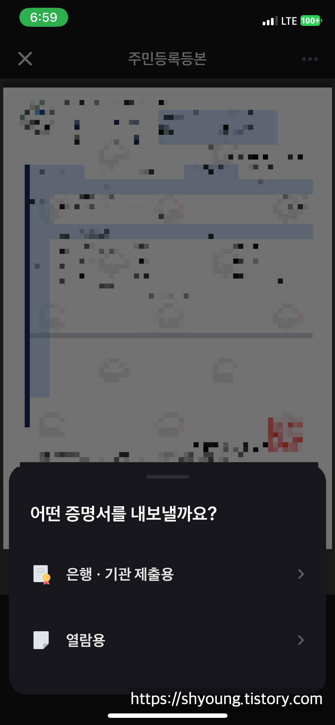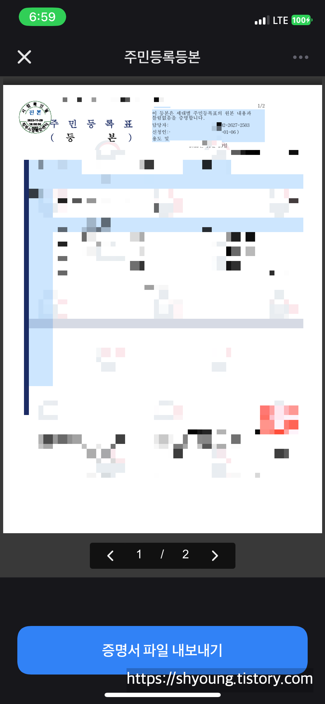 이렇게 모바일로 등본이 발급이 완료가 되었고..