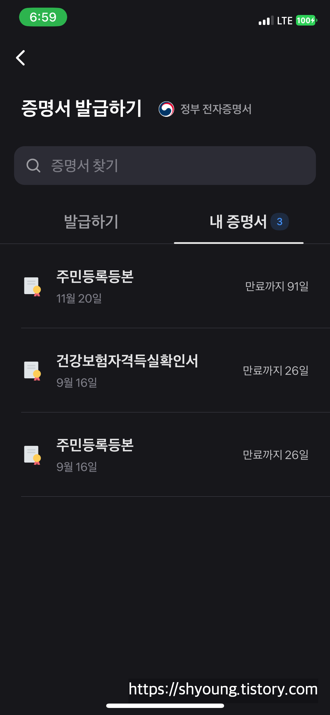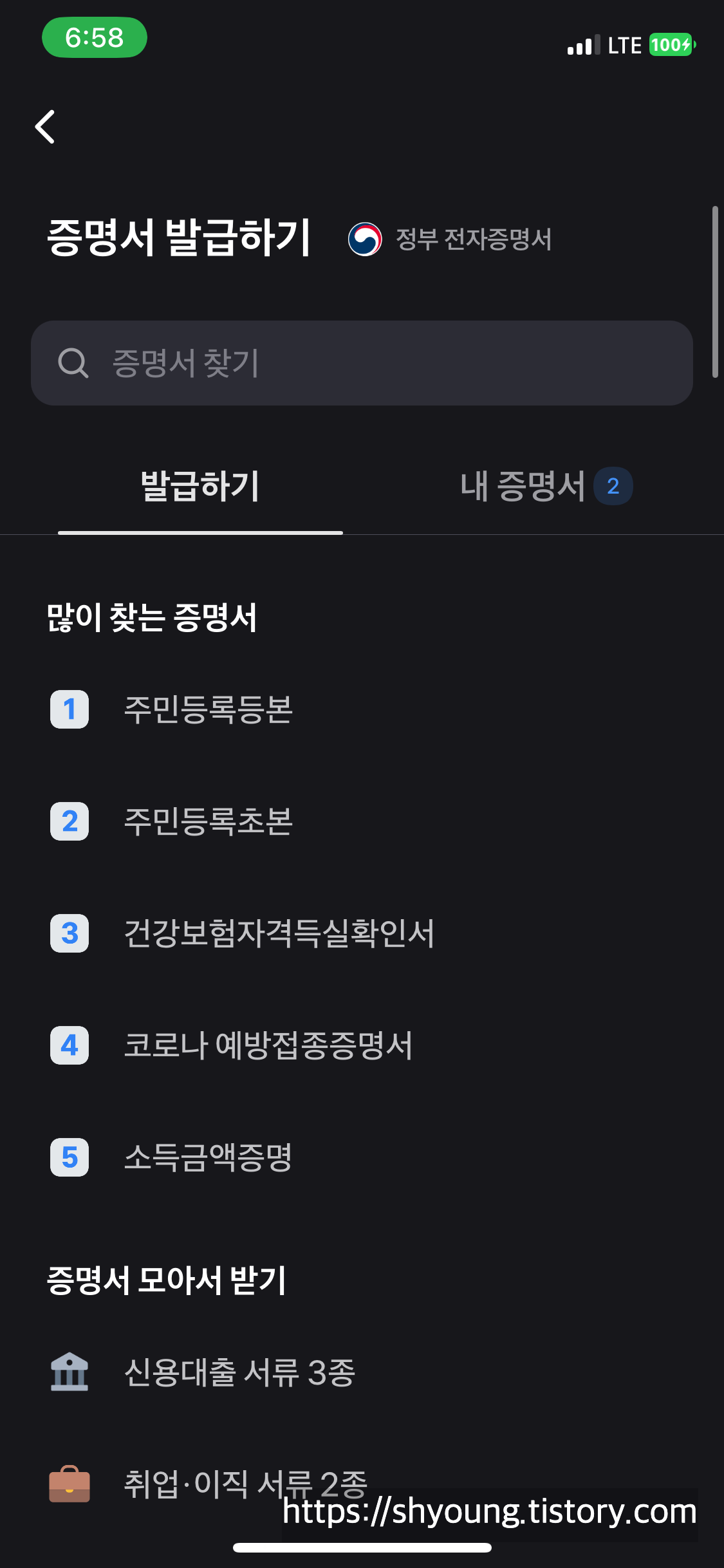 발급이 완료되면 내 증명서 탭에서 다시 확인도 가능하고,